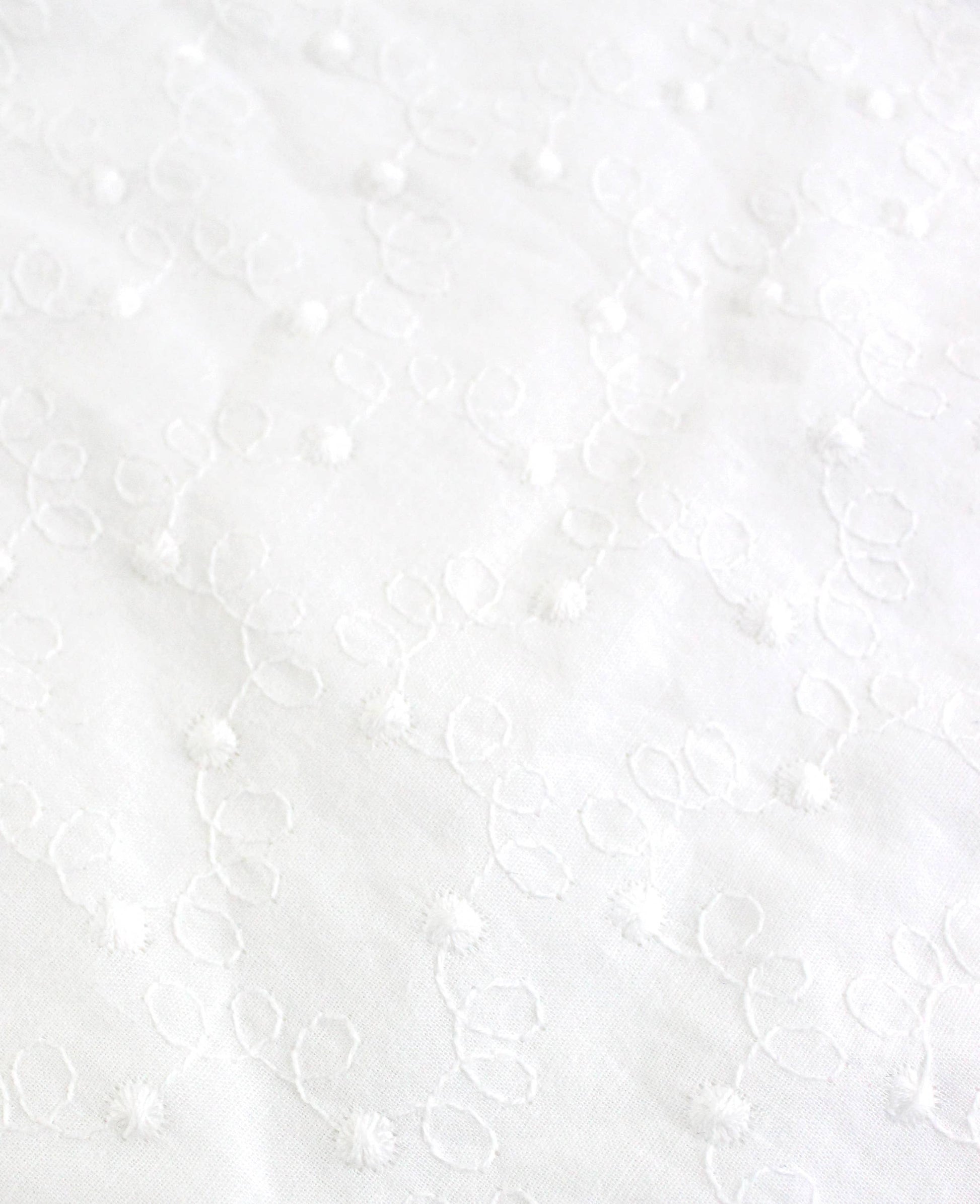 Tiny embroidered dots elevate a simple white fabric into something special, while the pink trim adds the finishing touch!