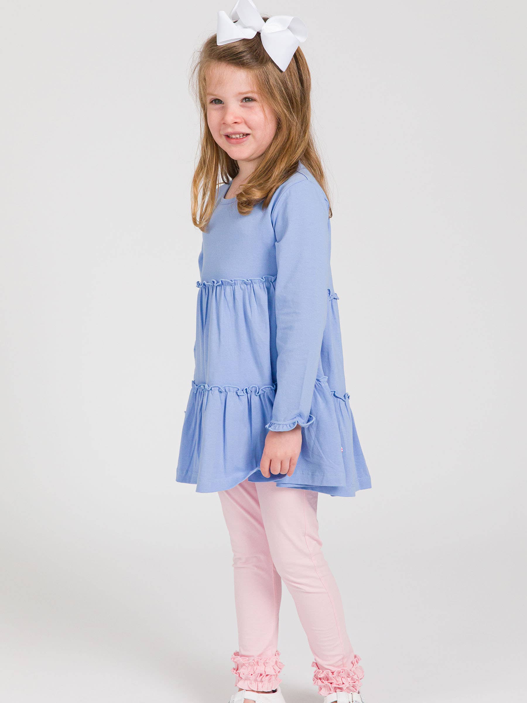 Girls Periwinkle Blue Knit Ruffle Tiered Tunic Top