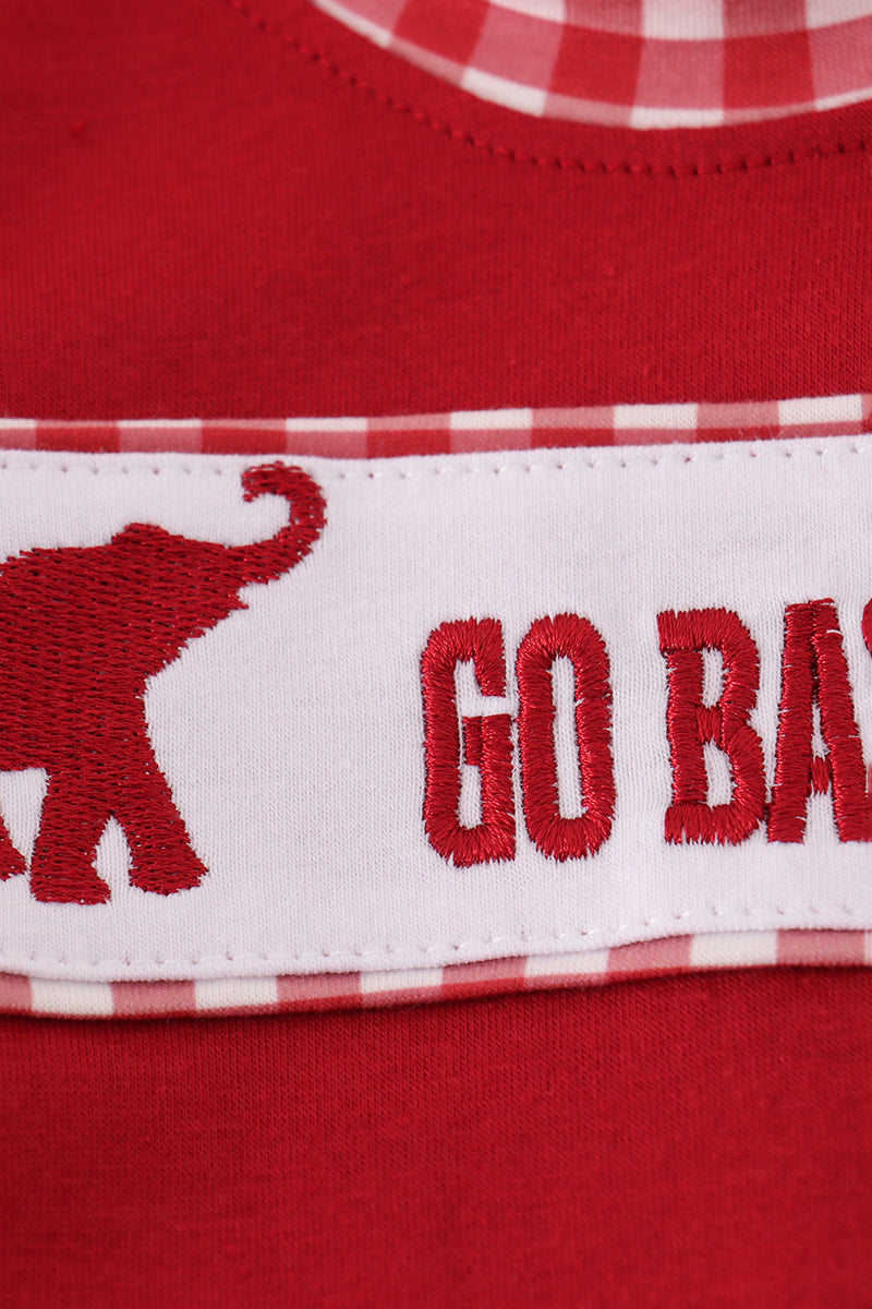 Show your team spirit in style with this playful maroon romper featuring charming Alabama embroidery. Perfect for game days or casual outings, its comfortable fit lets you cheer on your favorite team while staying cool and cute. Embrace fun and fandom all in one!