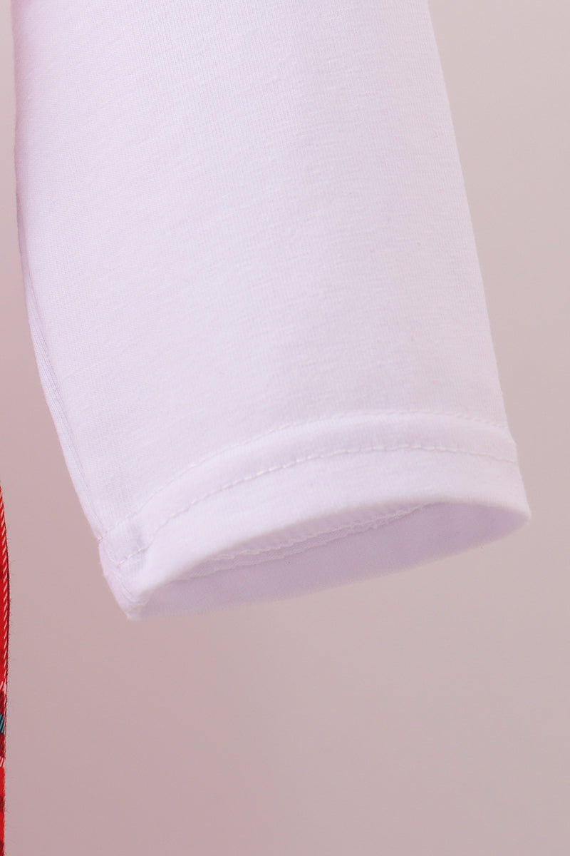 Red tree embroidery plaid jumpsuit set
