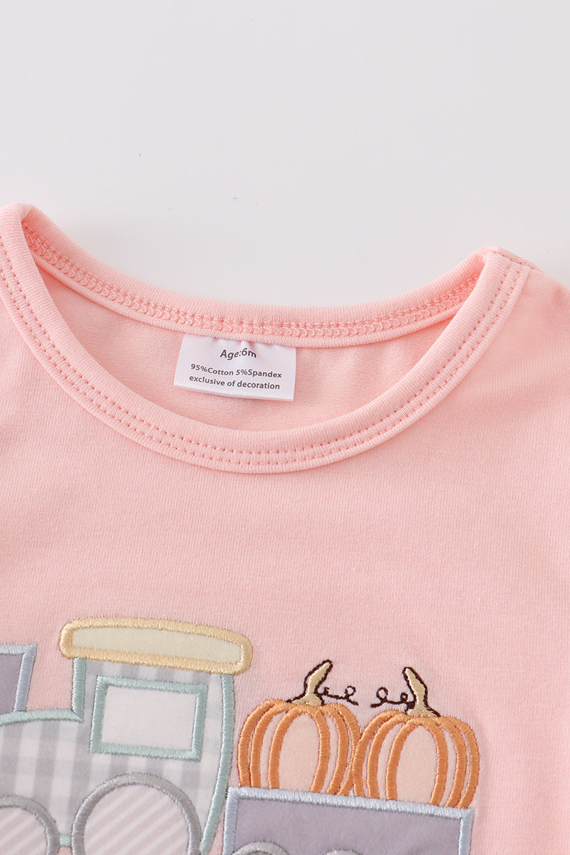 This beige train bubble is pumpkin-filled and perfect for the little girl who loves life in the fast lane! Featuring an adorable applique, it'll have your cutie chugging along in chic style. All aboard for an exciting autumn adventure!